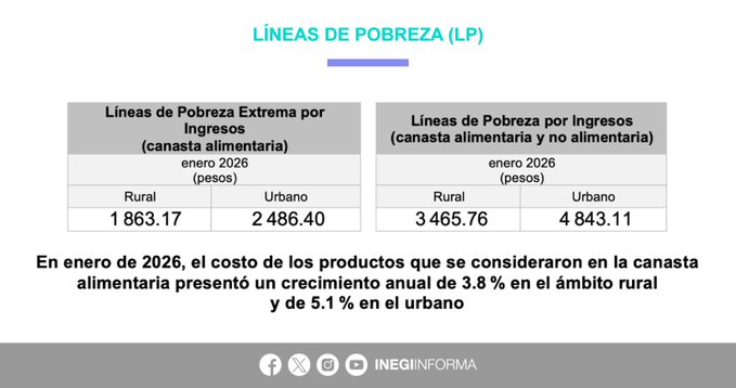 El Inegi señaló que estos indicadores sirven como referencia para medir la pobreza por ingresos y evaluar si la población cuenta con recursos suficientes para cubrir necesidades esenciales.