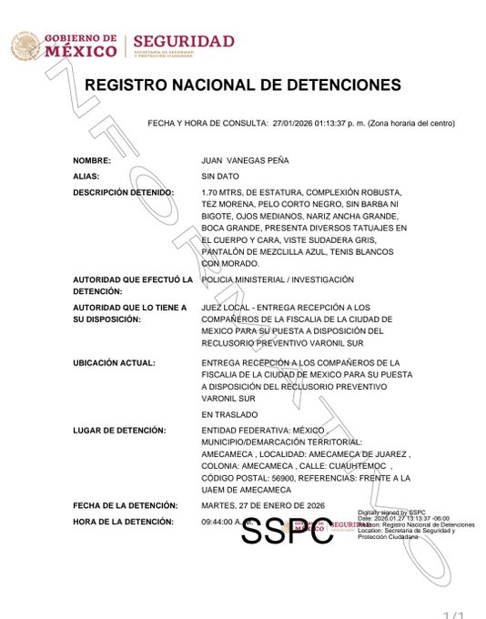- Detención en Amecameca de Juárez mediante operativo conjunto CDMX–Edomex.