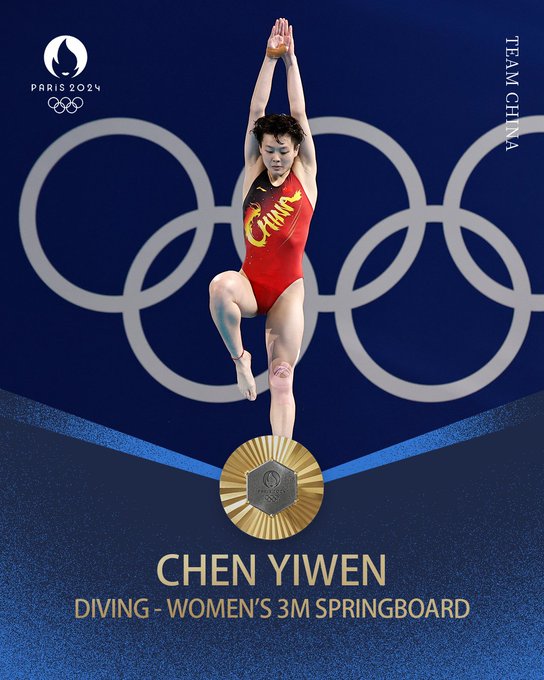 - China logra su séptima medalla de oro en clavados en los Juegos Olímpicos de París, con Chen Yiwen ganando en el trampolín femenino de 3 metros.