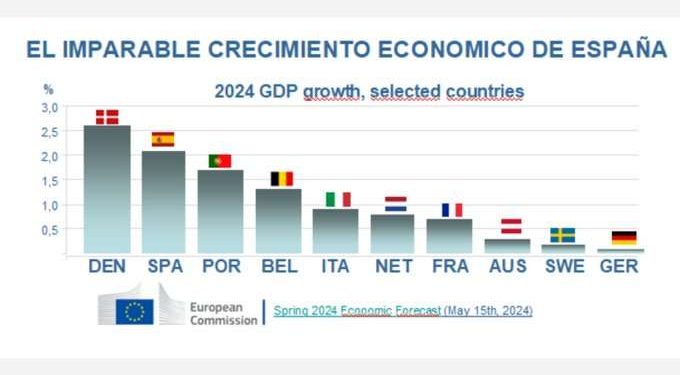 España Encabeza el Crecimiento en la Eurozona Según el informe de la Comisión Europea, España será la economía que más crecerá entre las grandes de la eurozona en 2024, impulsada por la demanda interna y la resiliencia del mercado laboral.