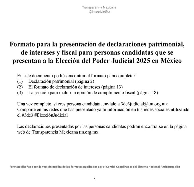 Aunque la “tres de tres” es una demanda social recurrente, aún no es obligatoria para quienes buscan cargos públicos. Transparencia Mexicana ha promovido su uso en cada proceso electoral, como una herramienta para conocer el patrimonio, intereses y situación fiscal de los aspirantes.