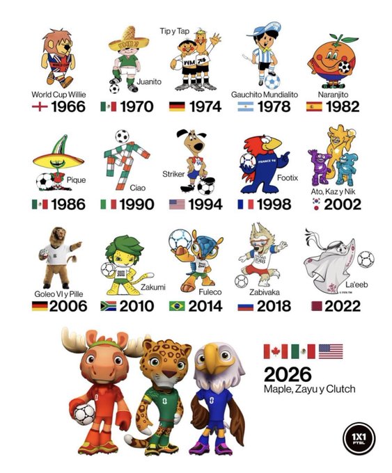 México ya tuvo dos mascotas en mundiales anteriores: Juanito, en 1970, un niño con sombrero charro y uniforme de la selección; y Pique, en 1986, un chile jalapeño sonriente que representaba la gastronomía y alegría del país.