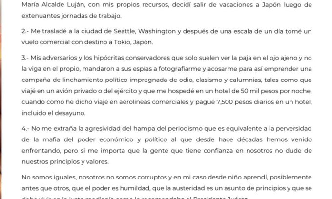 El 5 de agosto, López Beltrán envió una carta a la dirigencia de Morena para precisar que viajó en vuelo comercial y pagó 7 mil 500 pesos por noche en un hotel, con desayuno incluido. Negó hospedarse en un hotel de 50 mil pesos por noche o usar vuelos privados, y acusó a la oposición de enviar personas para seguirlo durante el viaje.