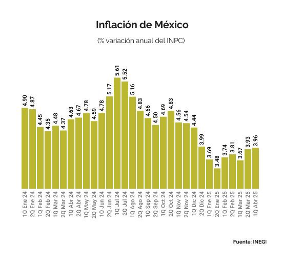 Inflación en México sube a 3.96% en abril y se mantiene dentro del objetivo