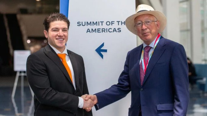 • El embajador de EE. UU. en México Ken Salazar se reunió con el gobernador de Nuevo León Samuel García para discutir temas clave como el nearshoring y el T-MEC.