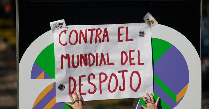 En el pronunciamiento público, los colectivos alertaron que el Mundial permitirá intensificar la especulación inmobiliaria, el encarecimiento del alquiler y el despojo de bienes comunes, como el acceso al agua. De acuerdo con los manifestantes, el costo de la renta podría incrementarse hasta en 155%, afectando principalmente a sectores de bajos ingresos.