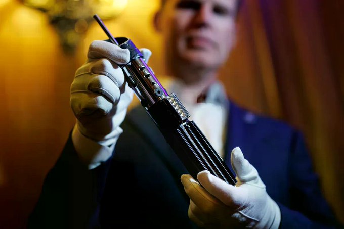 Entre los lotes se encuentran además el látigo, cinturón y funda usados por Harrison Ford en Indiana Jones y la última cruzada (1989); el casco de Sauron en El Señor de los Anillos: La Comunidad del Anillo (2001); una claqueta original de Tiburón (1975); y un vestido que Jane Fonda llevó en Barbarella (1968).
