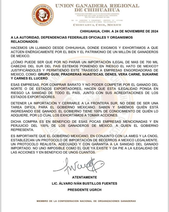 “El caso no corresponde a un animal mexicano, pero al detectarse en el país, se activan medidas inmediatas como el cierre fronterizo”, explicó.