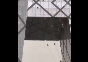 Read moreFuertes vientos debido a una tormenta eléctrica dejaron a los empleados colgando de edificio en Beijing. Los trabajadores de mantenimiento ...