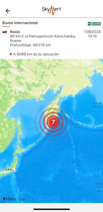 Un terremoto de magnitud 7 impactó la región costera de Kamchatka, Rusia, según informó el Servicio Geológico de Estados Unidos (USGS). Inicialmente, se emitió una alerta de tsunami, la cual fue levantada poco después. El temblor se registró en las aguas frente a la península de Kamchatka a una profundidad cercana a los 50 kilómetros, aproximadamente a las 07:00 horas locales, y a unos 90 kilómetros al este de Petropávlovsk-Kamchatski.